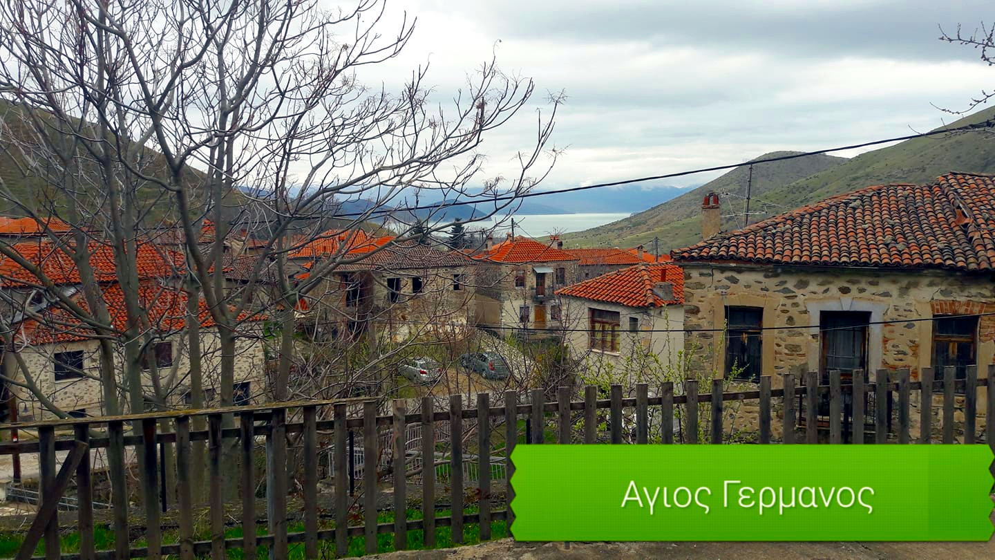 Το κεφαλοχώρι Άγ. Γερμανός απέχει 48 χλμ από τη Φλώρινα και 54 χλμ από την Καστοριά, ενώ είναι χτισμένος σε υψ. 1.050μ. Οι σημερινοί κάτοικοι του Αγίου Γερμανού μεταφέρθηκαν στην περιοχή, που είχε ερημώσει από τον εμφύλιο πόλεμο, το 1952-54. Πριν τον Εμφύλιο, το χωριό αριθμούσε 3.500 κατοίκους. Σήμερα όμως κατοικούν περίπου 250 άτομα όλο το χρόνο. Οι κύριες ασχολίες τους είναι η γεωργία, η κτηνοτροφία και ο τουρισμός. Στο χωριό λειτουργεί και παραδοσιακό αποστακτήριο για την παρασκευή τσίπουρου. Ολόκληρος ο οικισμός παρουσιάζει μεγάλο αρχιτεκτονικό ενδιαφέρον. Πολλά από τα αξιόλογα σωζόμενα πέτρινα σπίτια χτίστηκαν στον οικισμό μέχρι το Β' Παγκόσμιο Πόλεμο. Ο επισκέπτης αξίζει να δει τον εγγεγραμμένο σταυροειδή με τρούλο ναό του Αγ. Γερμανού (11 ου αι.), αφιερωμένο στον ομώνυμο άγιο και Πατριάρχη Κωνσταντινουπόλεως που διασώζει τοιχογραφίες των 11ου, 13ου και 18ου αι., καθώς και τον ομώνυμο νεότερο ενοριακό ναό του 1882. Υπάρχει ακόμη η εκκλησία του Αγ. Αθανασίου (17ος αι.). Στην πλατεία του χωριού κάθε χρόνο στις 23/4 και στις 12/5 οργανώνεται τοπικό πανηγύρι. Αγαπημένοι χοροί είναι ο λιτός και τα ηπειρώτικα. Στο χωριό λειτουργεί Παιδική Δανειστική βιβλιοθήκη. Σημαντικές υπηρεσίες στην ανάπτυξη του τόπου προσφέρουν ο Πολιτιστικός Σύλλογος και η Εταιρεία Προστασίας Πρεσπών. Εδώ λειτουργεί, επίσης, Κέντρο Πληροφόρησης, με στοιχεία για το φυσικό περιβάλλον! Τα πουλιά της περιοχής, τις ανθρώπινες δραστηριότητες και οργανωμένες ξεναγήσεις στην περιοχή με ειδικευμένους ξεναγούς. Πάνω στο ευρωπαϊκό μονοπάτι Ε6, που διέρχεται από την περιοχή, βρίσκονται οι πηγές «Μοτσάρα» και «Ποτίστρα». Άλλες πηγές της περιοχής είναι το «Φυλάκιο», το «Προσήλιο» και η«Γιοβάνιτσα». Το χωριό διασχίζει το Παλιόρεμα, στα νερά του οποίου διαβιεί ενδημικό είδος άγριας πέστροφας. Κατά μήκος του ποταμού σώζονται τέσσερα γεφύρια και ένα στην πλατεία του χωριού. Οι κορυφές του Βαρνούντα Κίρκο (2.156 μ.), ΚίτσεΒο (2.334 μ), Κότσυφας (2.066 μ), Γαϊδουρίτσα, Μπέλλα Βόδα (2.177 μ.) και Γιοβάνιτσα (2.125 μ) προσφέρουν πανοραμική θέα της γύρω περιοχής, όπως και οι θέσεις «Φυλάκιο» και «Προσήλιο». Μεγάλες δασικές εκτάσεις με έλατα και οξιές απλώνονται γύρω από το χωριό. |